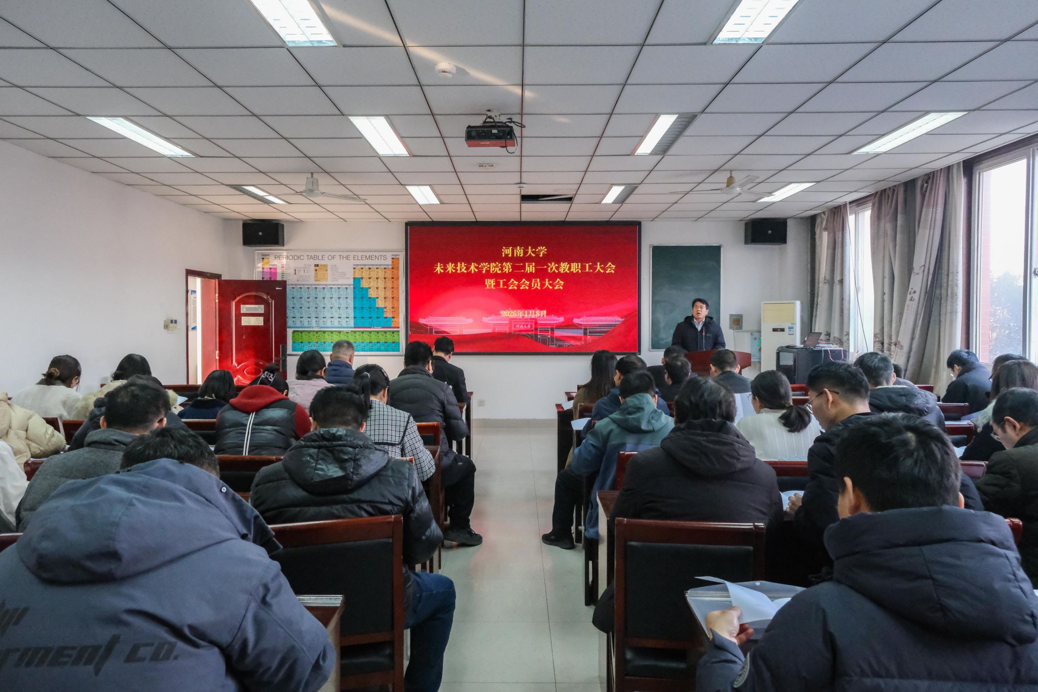 2026年1月8日,未来技术学院(量子信息)第二届一次教职工大会暨工会会员大会在学院B304会议室举行。校工会副主席徐飞到会指导,学院全体教职工参会。预备会议审议通过了《大会主席团名单》和《大会主要议程》。